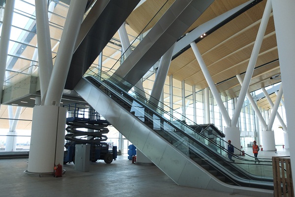 С арендаторами торговых площадей аэропорт уже практически определился. На первом этаже крыши всех павильонов и ресторанов будут украшены живой травой. На втором этаже и вовсе будет живой газон. Обещает Евгений Чудновский и другие внутренние «интересные архитектурные решения», которые пока держатся в секрете.